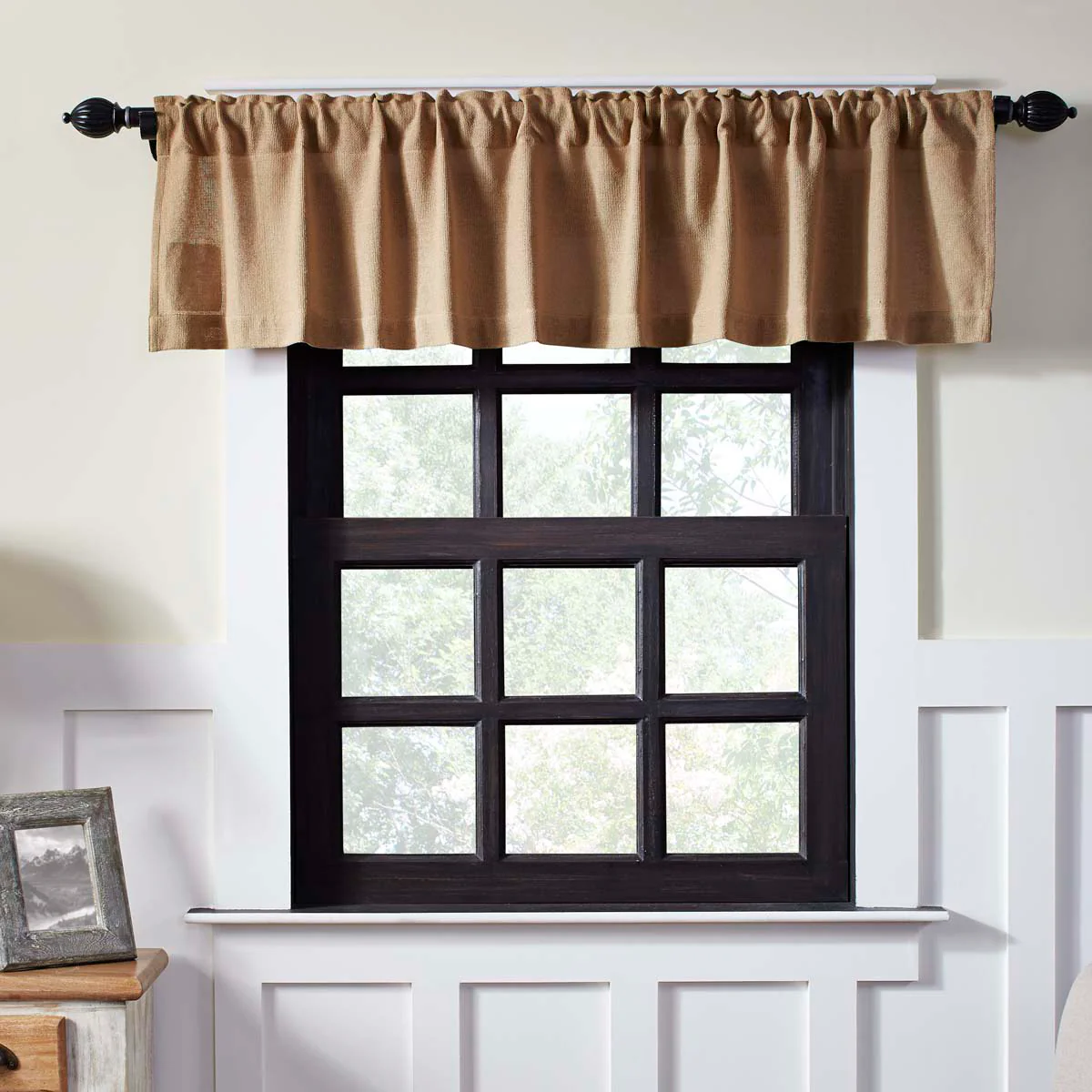 Dress your window with the Burlap Natural Valance for an understated rural country look. Proudly crafted in soft all-cotton burlap for a timeless adornment for years to come.